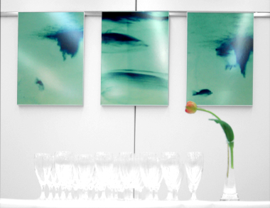 waren Makroaufnahmen von Blumen. So stand man zum Anschauen inmitten